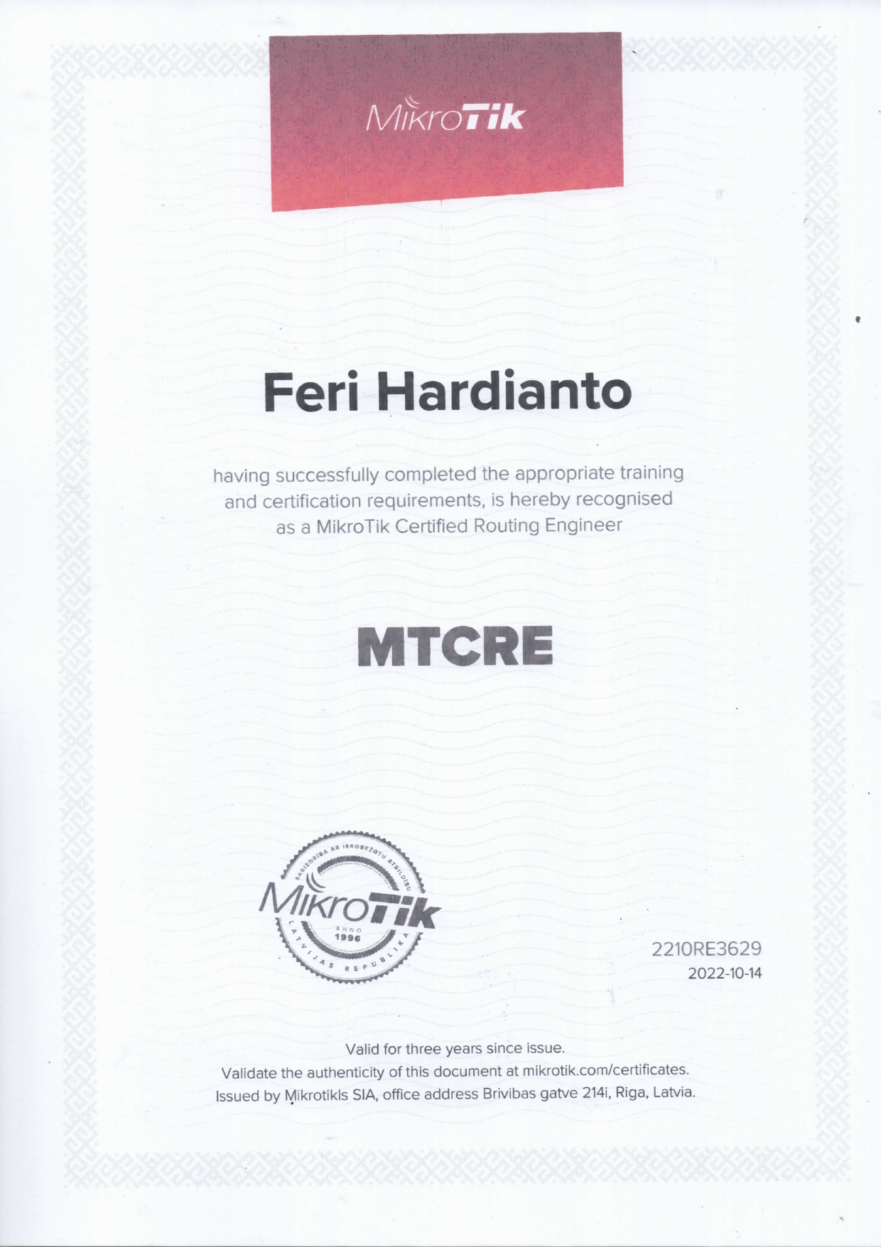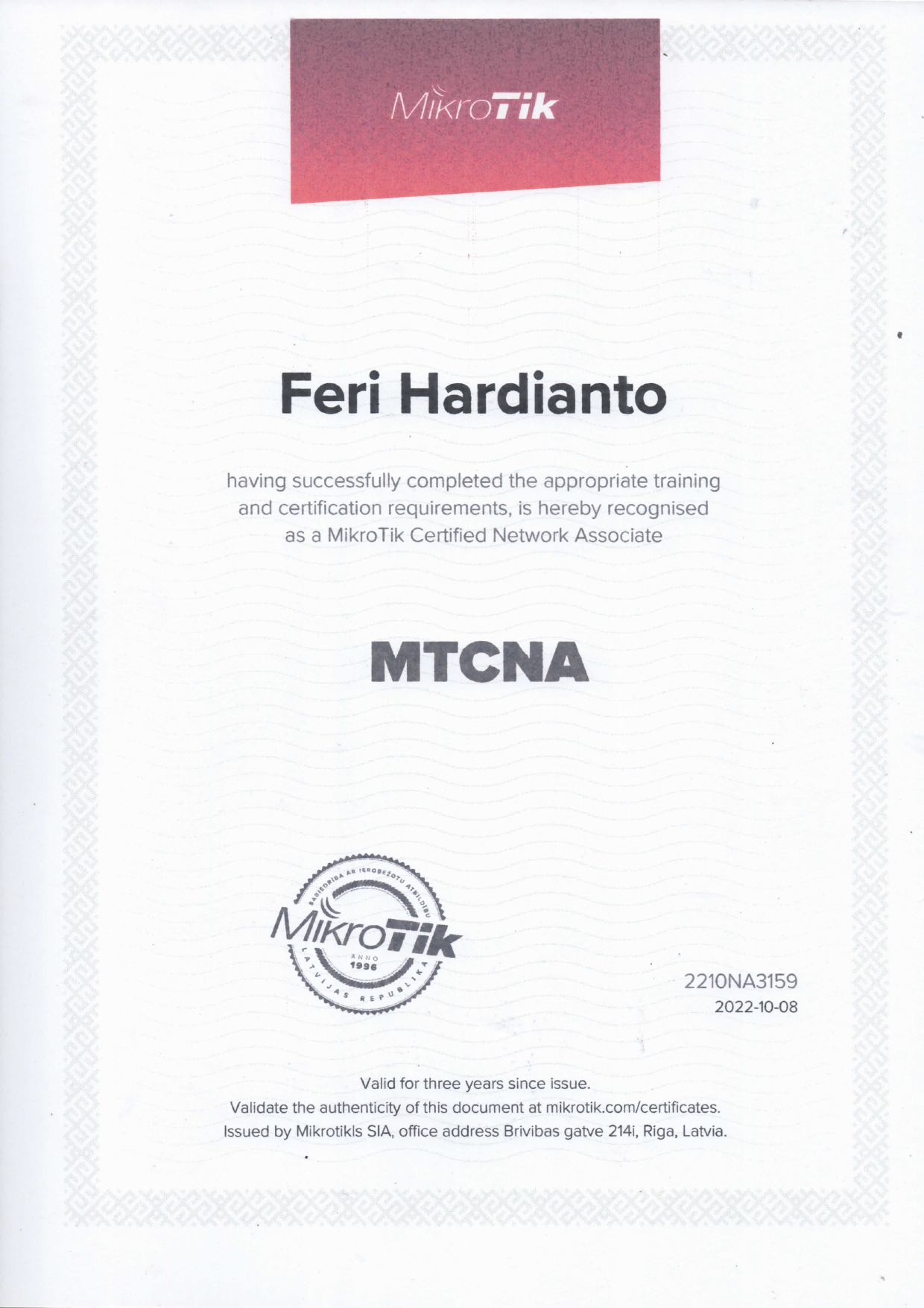 Seluruh siswa Program Keahlian Teknik Komputer dan Jaringan akan diikutkan dalam training dan sertifikasi MTCNA sebelum kelulusan. Seluruh siswa tersebut akan dilatih terlebih dahulu selama 3 hari dengan materi-materi dari MTCNA Outline. Setelah menjalani training selama 3 hari, seluruh siswa akan diikutkan ujian MTCNA atau MTCNA Exam dan bagi siswa yang lulus akan mendapat Sertifikat Internasional MTCNA.